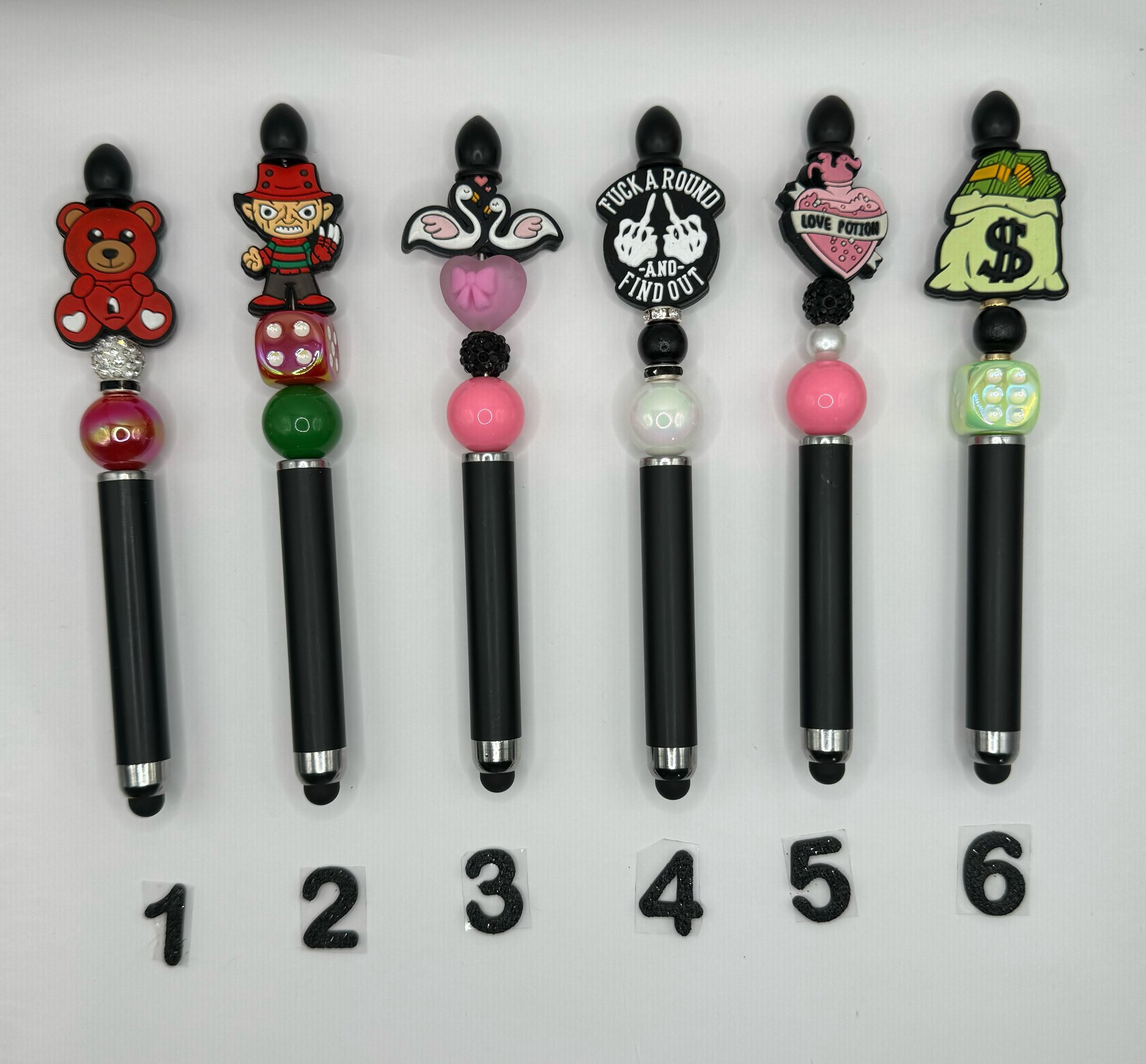 Multi Functional Design: These 2 n 1 beaded pens are equipped with a soft rubber touch tip, allows easy and smooth navigation on any modern touch screen device. Simply pull down the tube to access ballpoint for general writing purposes (black ink)