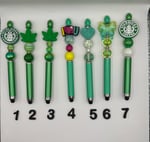 Green Beaded Dual Touchscreen/Ball Point Pens