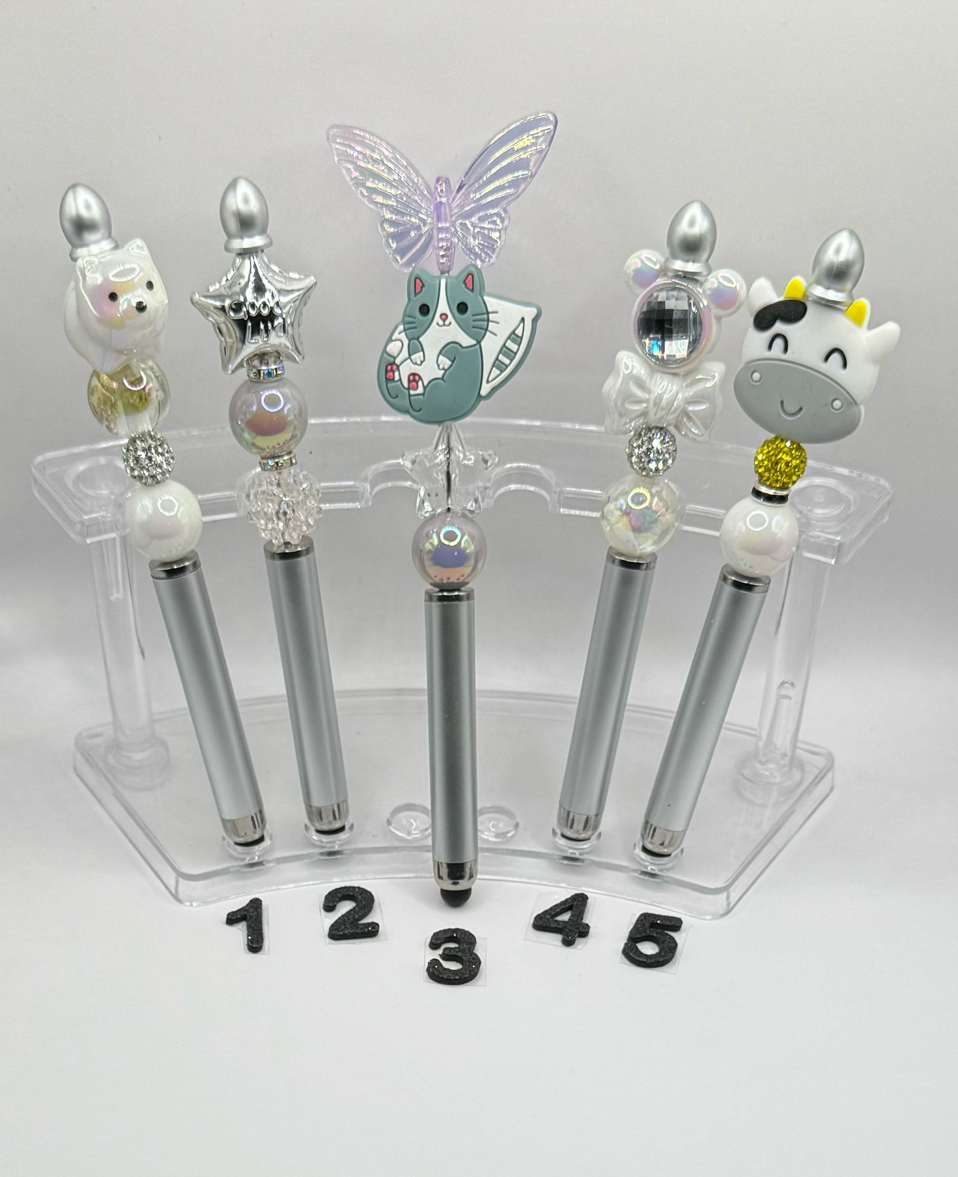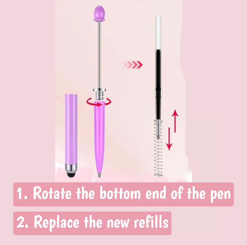 Multi Functional Design: These 2 n 1 beaded pens are equipped with a soft rubber touch tip, allows easy and smooth navigation on any modern touch screen device. Simply pull down the tube to access ballpoint for general writing purposes (black ink)